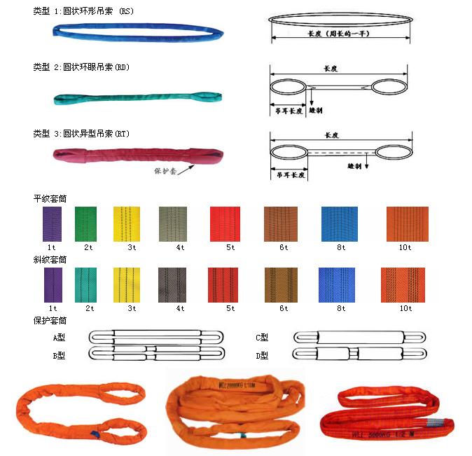 柔性吊帶用于配合吊鉤等起重吊裝物體,可以適用于多種吊裝條件下的物體起吊,它既有高強度,又能夠不傷害物體表面,既輕便又柔軟,可以多種組合的使用方式。 制造材料:100%PES 工作溫度:-40℃-100℃ 強度范圍:1t-300t 安全系數(shù):6 彈性伸長:額定載荷<3% 斷裂載荷下<10% 載荷識別:在使用過程中吊帶上所標噸位,可通過吊帶外套上的顏色識別承載重量 標準:國際標準ISO04878 歐洲標準EN1492-2 長度:按照客戶要求。